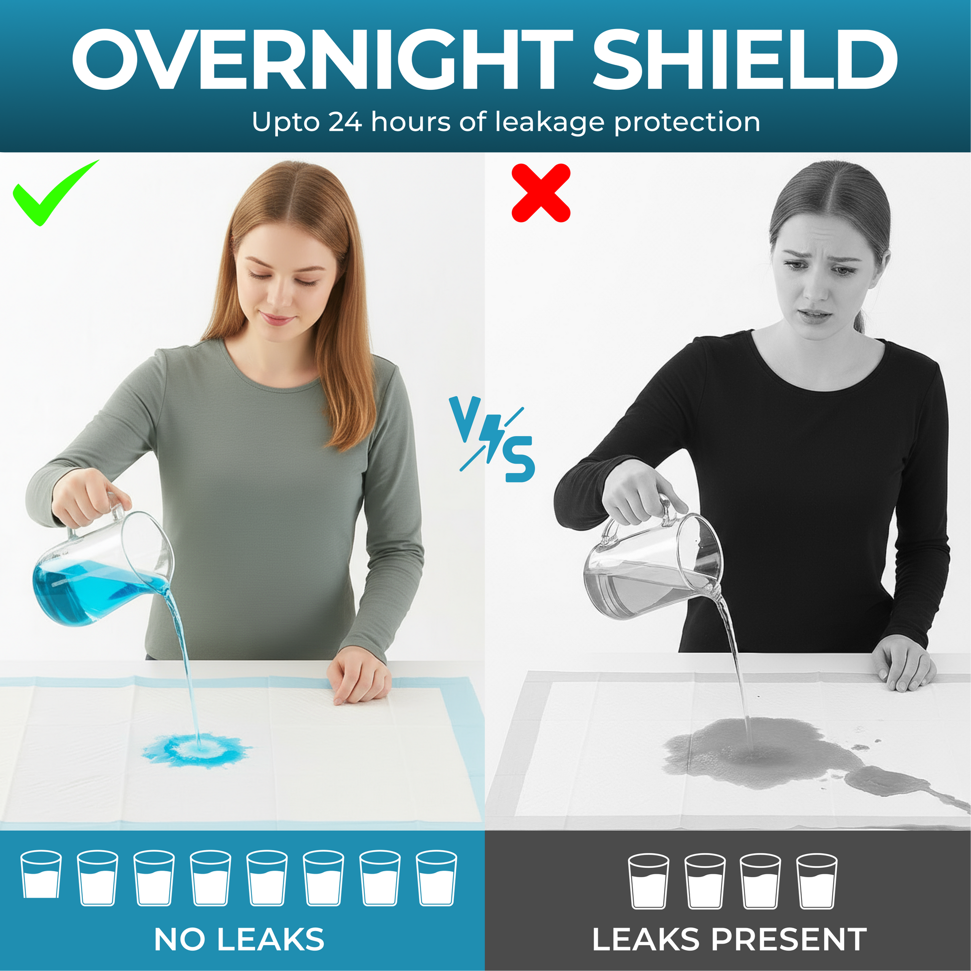 9g SAP technology instantly absorbs up to 1300ml of liquid.